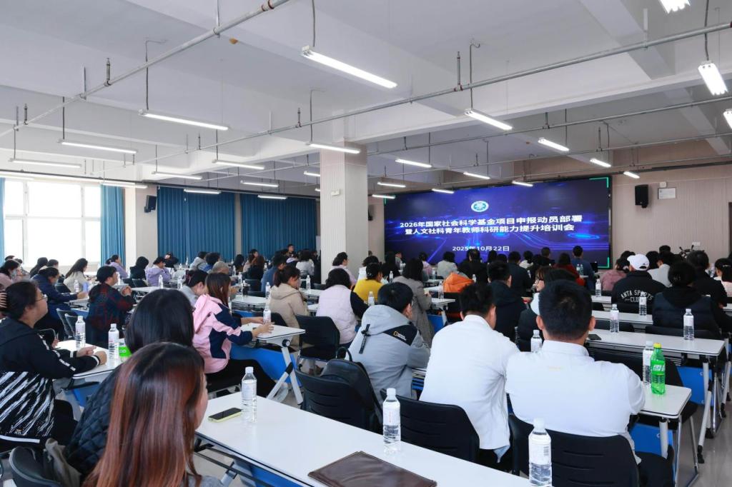 2025年10月22日,我校召开2026年度国家社会科学基金项目申报动员部署会暨人文社科青年教师科研能力提升培训会。校党委常委、副校长陈连军主持会议,文科教学院部院长(主任)、分管科研工作副院长(副主任)、教师代表和近三年新进青年教师共同参会,临沂校区教师线上参会,参会教师200余人。