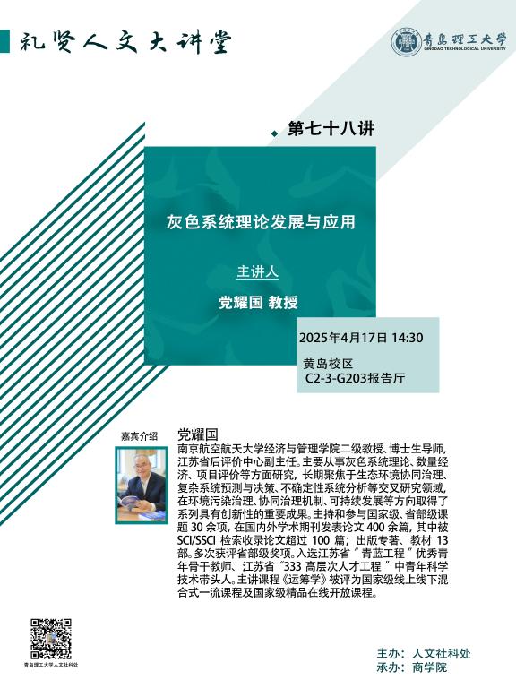 学术预告|【礼贤人文大讲堂】第七十八讲:灰色系统理论发展与应用