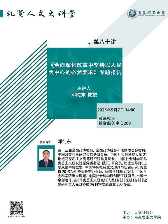 学术预告|【礼贤人文大讲堂】第八十讲:《全面深化改革中坚持以人民为中心的必然要求》专题报告