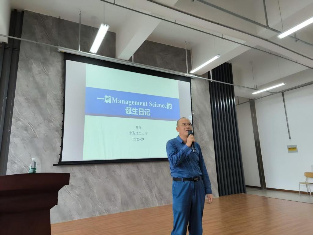 9月24日下午,yl1111永利集团礼贤人文大讲堂第九十一讲在黄岛校区C2-3-G203报告厅举办。中国石油大学(华东)教授、博士生导师、山东省泰山学者特聘专家邢伟应邀做题为“一篇Management Science的诞生日记”专题讲座。讲座由人文社科处主办,管理工程学院承办。讲座由管理工程学院教授马冉主持,各学院教师代表、学生代表参加了本次讲座。