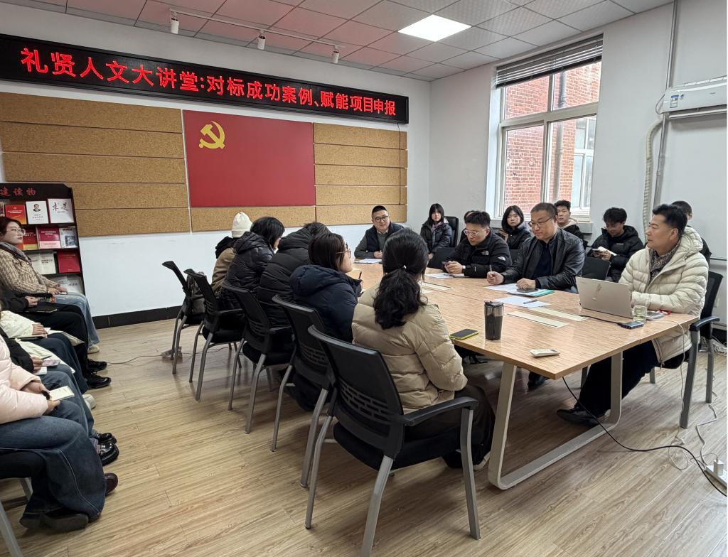 3月10日,人文社科处主办、艺术与设计学院承办的礼贤人文大讲堂第一百一十四讲在市北校区二号教学楼228会议室举行。青岛大学张成义教授受邀作题为《对标成功案例、赋能项目申报》的专题讲座。艺术与设计学院院长朱宏轩教授、副院长丁南教授和申报2025年度高水平项目的全体教师参加了讲座,讲座由朱宏轩院长主持。