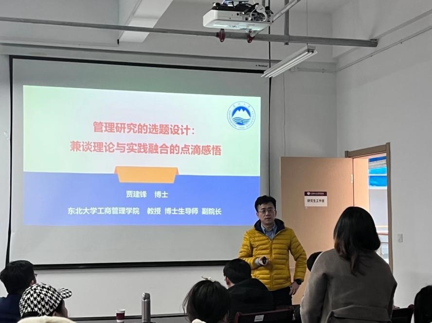 2月24日下午,yl1111永利集团70周年校庆系列学术活动暨礼贤人文大讲堂第十八讲在商学院410室举行。本次邀请东北大学工商管理学院副院长、教授、博士生导师、美国罗格斯大学访问学者贾建锋主讲,宣讲主题为“管理研究的选题设计-兼谈理论与实践的融合”。商学院院长云乐鑫、中国社会科学院大学国际教育学院援外教育与发展中心主任宋翔参加会议,商学院副院长金炜博主持会议。