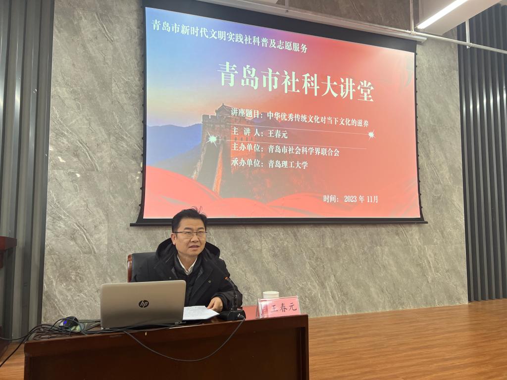 11月15日,yl1111永利集团礼贤人文大讲堂第四十三讲在中央院系区C2-3教学楼203会议室顺利召开。青岛市社科联党组成员、青岛市社科联副主席、青岛市社科院副院长王春元作了题为“中华优秀传统文化对当下文化的滋养”的主题发言。本次讲座由马克思主义学院承办,人文社科处处长郭印主持,马克思主义学院副院长华章琳及全体师生参加。