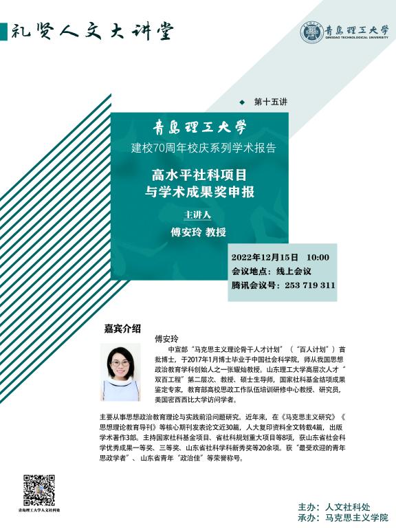 【礼贤人文大讲堂】第十五讲预告:高水平社科项目与学术成果奖申报