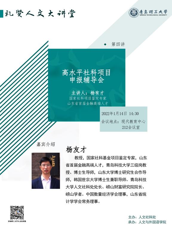 【礼贤人文大讲堂】第四讲预告:高水平社科项目申报辅导会