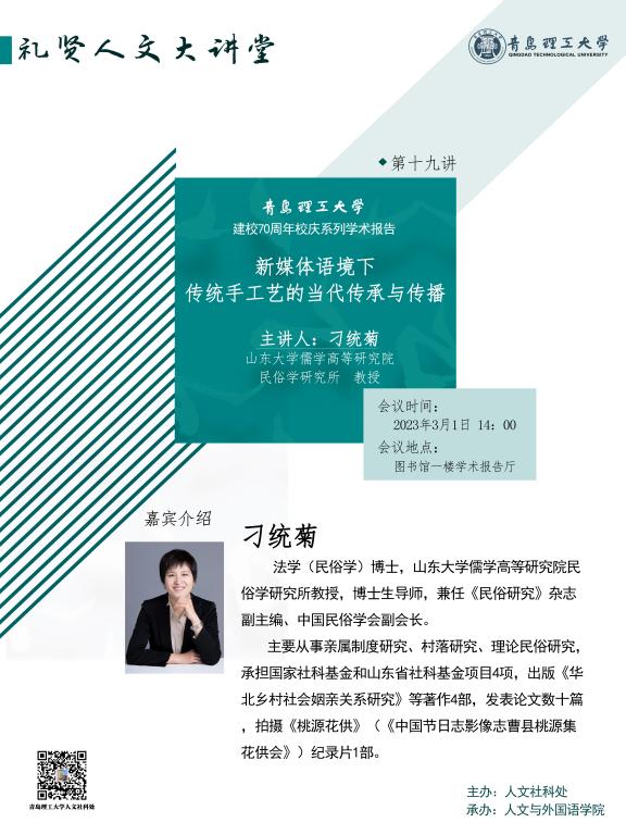 【礼贤人文大讲堂】第十九讲预告:新媒体语境下传统手工艺的当代传承与传播