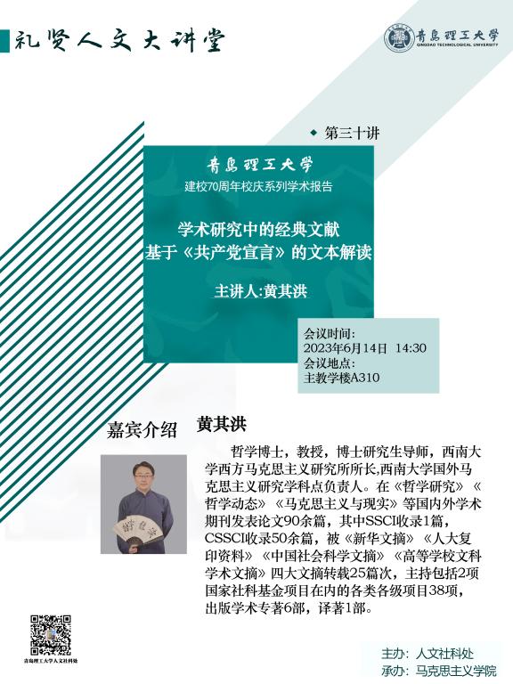 【礼贤人文大讲堂】第三十讲预告:学术研究中的经典文献--基于《共产党宣言》的文本解读