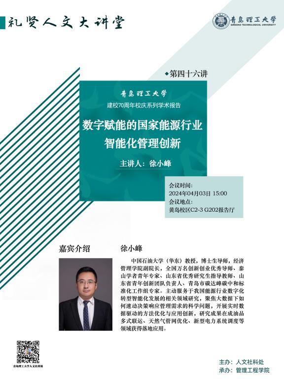 【礼贤人文大讲堂】第四十六讲预告:数字赋能的国家能源行业智能化管理创新