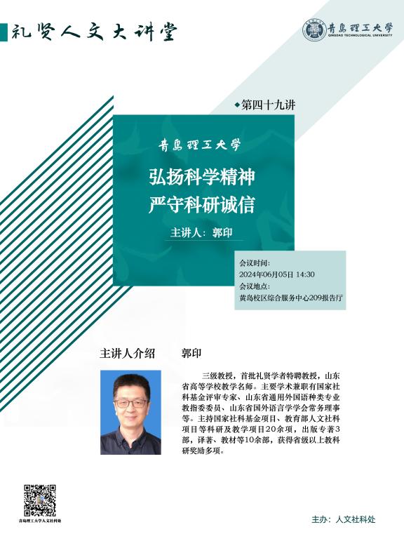 【礼贤人文大讲堂】第四十九讲预告:弘扬科学精神 严守科研诚信