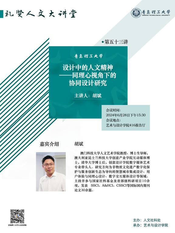 【礼贤人文大讲堂】第五十三讲预告:设计中的人文精神——同理心视角下的协同设计研究